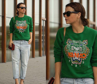 秋季新款歐美刺繡老虎頭圖案tiger衛衣女套頭抓絨衛衣 速賣通爆款 /