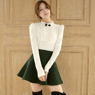2014新款女裝女毛線裙 格子裙高腰半身裙 毛線針織打底短蓬蓬裙 /
