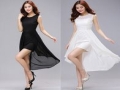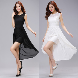 2015夏季連衣裙潮女新款韓版修身顯瘦無袖不規則燕尾雪紡裙 /