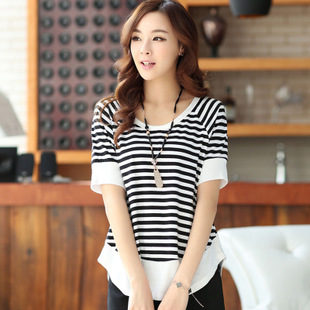 簡介: 建議零售價 ¥139.00 貨源類別 現貨 產地 東莞 主圖來源 實拍有模特 圖案 條紋 風格 韓版 款式 套頭 袖長 短袖 工藝 拼貼/拼接 面料名稱 棉類混紡 面料主材質分類 棉纖維 面料主材質 棉花 面料主材質含量 51%-70% 面料次要材質分類 合成纖維 面料次要材質 聚酯纖維(滌綸) 面料次要材質含量 21%-30% 面料其他材質 氨綸 貨號 352# 版型 寬松型 衣長 普通款(50cm<衣長≤65cm) 領型 圓領 袖型 插肩袖 流行元素 拼接,撞色 上市年份/季節 2015夏季 面料 混紡 成分 棉 成分含量 51%-70% 顏色 黑白條紋 尺碼 S,M,L