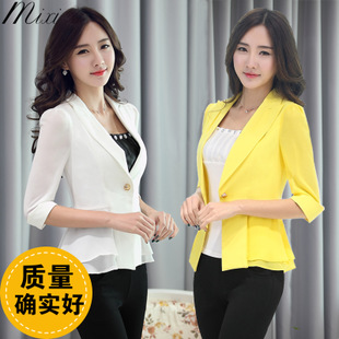 2015夏季新款七分袖 雪紡創意風格女短款顯瘦休閑時尚小西裝 /
