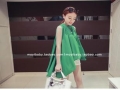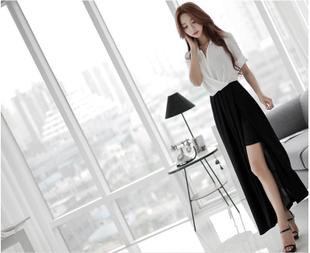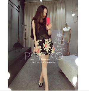 2015韓版時尚雙層露肩斗篷雪紡衣+ 高腰花苞蓬蓬短裙 /