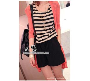 2014歐美外貿夏裝大牌春裝連衣褲女雪紡連身褲條紋連體短褲 /