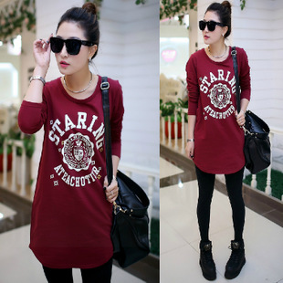 2014秋裝韓版女裝中長款寬松大碼長袖純棉打底衫 新款學(xué)生裝T恤女 /