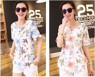 代發(fā)-歐洲站2015新款時尚大碼棉麻印花上衣休閑寬松顯瘦短褲套裝 /