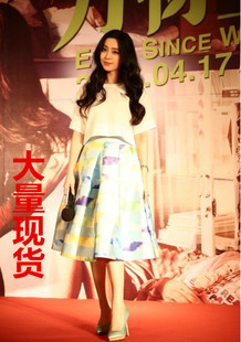 歐美撞色套裝裙范冰冰萬物生長同款短袖條紋彩色連衣裙套裝 /