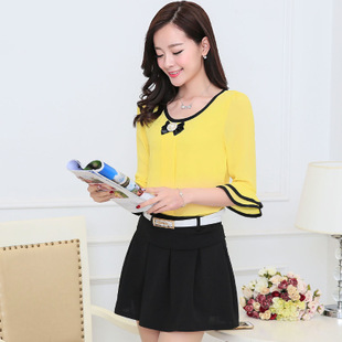 2015春裝新款淑女雪紡連衣裙兩件套修身顯瘦時尚上衣短裙褲套裙 /