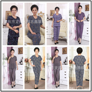 中老年女裝夏裝套裝廠家批發 中老年女裝夏短袖 地攤中老年 /