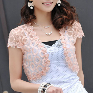 夏裝韓版新款女裝短袖外套短小坎肩蕾絲百搭開衫小披肩 /