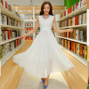 2015夏季新款大碼女裝沙灘長裙修身氣質波西米亞雪紡連衣裙 /