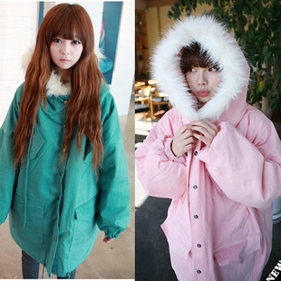 韓國代購Ulzzang 新款棉衣韓版女冬季加厚中長真毛領寬松情侶棉服 /