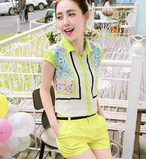 簡介: 貨號 59805-332D55 產地 廣州 品牌 自主品牌 主圖來源 其他來源 貨源類別 現貨 是否庫存 是 庫存類型 整單 風格 韓版 甜美 圖案 印花 面料 雪紡/喬其紗 款式 褲套裝 上衣款式 雪紡衫 上衣袖長 無袖 褲款式 鉛筆褲 褲長 短褲 流行元素 拼接 工藝 印花/印染 上市年份/季節 2015夏季 顏色 熒光黃,藍色 尺碼 M,L,XL