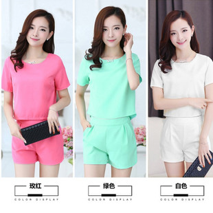 簡介: 建議零售價 ¥198.00 貨號 8121# 產地 廣州 品牌 自主品牌 主圖來源 實拍有模特 貨源類別 現貨 是否庫存 是 庫存類型 整單 風格 休閑名媛韓版 圖案 純色 面料 雪紡/喬其紗 款式 褲套裝 上衣款式 雪紡衫 上衣袖長 短袖 褲款式 闊腿褲 褲長 短褲 流行元素 拼接,蝴蝶結,木耳邊,透視,撞色,不規則,冰激淋色,刺繡,印花,熒光色 工藝 拼貼/拼接 上市年份/季節 2015夏季 顏色 白色,玫紅色,淺綠色 尺碼 S,M,L,XL