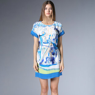 2015夏裝新款女裝批發(fā)工廠貨源真絲藍(lán)色印花紅色印花連連衣裙 /