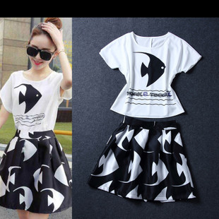 2015夏季新款女裝熱帶魚印花上衣半裙兩件套裝 深圳南油工廠貨源 /