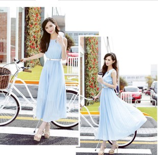 廠價直銷----2015夏新款純色雪紡顯瘦波西米亞女神長款連衣裙 /