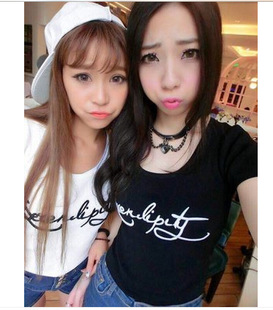 2015新款女裝韓國東大門代購韓版清新字母短款修身短袖針織 /