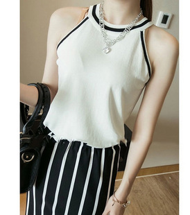 2015韓版修身顯瘦掛脖針織背心 彈力無袖上衣吊帶 /
