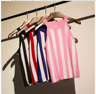 2015新款條紋針織背心外穿女韓版無袖上衣性感露肩短款緊身打底 /