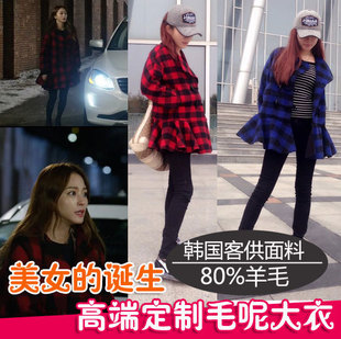 美女的誕生韓藝瑟莎同款我們結婚了娃娃裙擺加厚格子毛呢大衣女 /