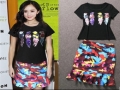 楊冪同款歐美大牌印花圓領(lǐng)短袖上衣T恤+印花半裙 套裝 廠家直銷 /