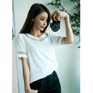 2015新款韓國東大門代購韓版歐根紗拼接女裝純色雪紡衫女裝大碼 /
