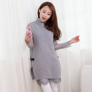 2015新款韓國東大門女裝韓版高檔針織衫假兩件蕾絲毛衣包臀兩件套 /