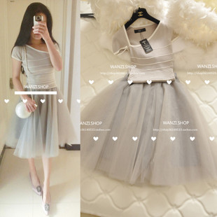 韓國代購2015春夏新款名媛小香風修身短袖針織衫蓬蓬半身裙套裝女 /