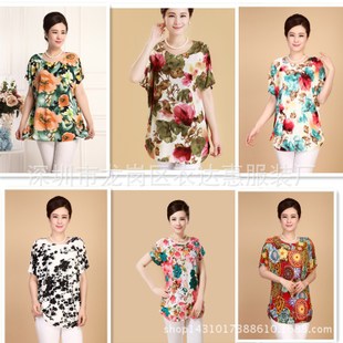 中老年女裝夏裝 大碼t恤短袖女裝中老年冰絲短袖媽媽服裝地攤批發 /