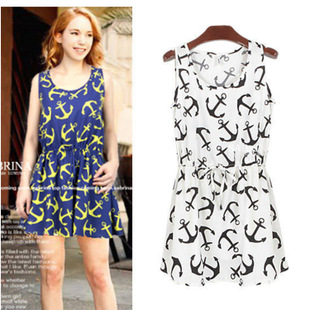 2015春夏歐美新款速賣通EBAY爆款女士印花連衣裙 海軍船錨印花 /