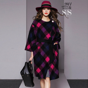 歐美秋冬季品牌女裝新款高端格子修身羊絨加厚加棉大衣外套 代發 /
