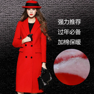歐美大牌女裝秋冬季新款高端定制加厚修身呢料大衣女紅色風衣外套 /