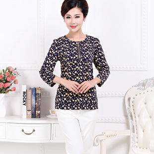 2015年新款中老年女夏裝 時尚娃娃領民族風印花 T恤媽媽裝夏批發 /