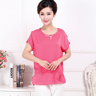 2015年夏裝新款中老年女式T恤 簡約大方 仿真絲中老年女裝夏批發 /