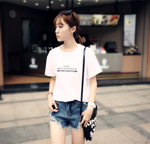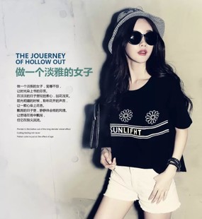 • 女裝針織韓版2015夏裝新款潮流全棉圓領(lǐng)短袖寬松印花T恤 /