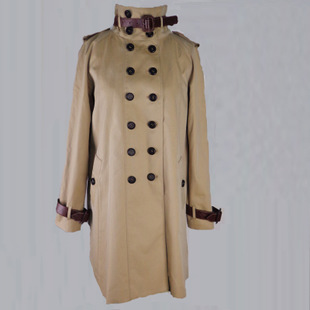 新款高檔外貿品牌風衣女雙排扣真皮扣長袖外套手工定制大衣 /