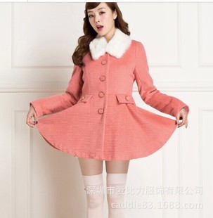 女裝批發2014冬韓版大衣樂町女裝甜美日系翻蓋修身呢大衣毛呢外套 /