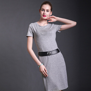 爆款媽媽裝2015新款歐美大碼燙鉆棉品牌連衣裙女裝夏季歐洲站 /