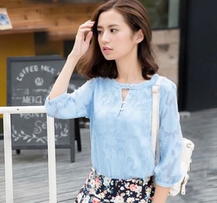 簡介: 產品類別 雪紡衫 貨源類別 現貨 風格 甜美 圖案 純色 主圖來源 實拍有模特 款式 套頭 工藝 勾花鏤空 面料名稱 見詳情 面料主材質分類 棉纖維 面料主材質 棉花 面料主材質含量 10%及以下 面料次要材質分類 棉纖維 面料次要材質 棉花 面料次要材質含量 10%及以下 貨號 NRJ618-B JX006# 產地 廣州 是否庫存 是 版型 寬松型 衣長 普通款(50cm<衣長≤65cm) 領型 圓領 袖型 常規袖 袖長 七分 流行元素 鏤空 上市年份/季節 2015春季 面料 雪紡 成分 棉 顏色 白色,藍色 尺碼 S,M,L,XL