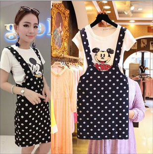 2015夏裝新款韓版學生時尚卡通短袖T恤+波點背帶裙一步連衣裙套裝 /