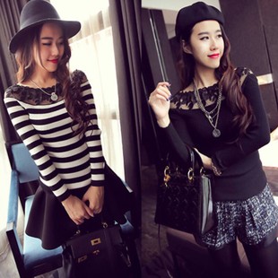 簡介: 貨號 A5-1393 產地 廣州 主圖來源 實拍有模特 貨源類別 現貨 是否庫存 是 風格 甜美 圖案 條紋 毛種類 混紡類 毛衫工藝 針織+蕾絲 厚薄 適中 款式 套頭 組合形式 單件套 版型 修身型 衣長 短款(40cm<衣長≤50cm) 領型 一字領 袖長 長袖 袖型 常規袖 流行元素 拼接 工藝 拼貼/拼接 上市年份/季節 2014秋季 顏色 黑色,黑白條紋 尺碼 均碼