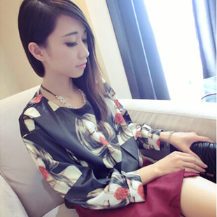 2014秋季新款韓版女裝寬松個性頭像印花長袖短款T恤打底衫 /