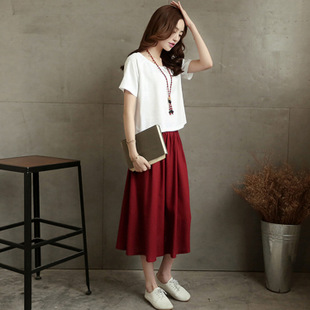 簡介: 貨號 888 產地 杭州 主圖來源 實拍有模特 貨源類別 現貨 是否庫存 是 庫存類型 整單 風格 森女 圖案 純色 面料 亞麻 款式 裙套裝 上衣款式 T恤 上衣袖長 短袖 裙長 中裙 流行元素 拼接 工藝 拼貼/拼接 上市年份/季節 2015夏季 顏色 上米下綠,上紅下白,上綠下米,上白下紅 尺碼 M,L,XL,2XL
