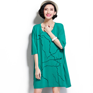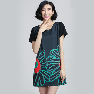 2015夏季熱銷新品大碼女裝胖MM寬松舒適印花連衣裙一件代發 /