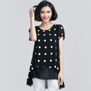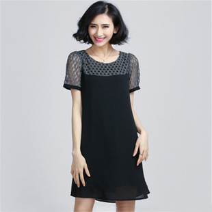 2015夏季新款韓國官網大碼女裝圓領短袖胖MM雪紡衫連衣裙一件代發 /