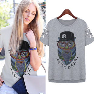 歐美大牌夏季女裝貓頭鷹女t恤短袖2015新款潮百搭鏤空印花半袖女 /