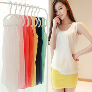 2015韓版女裝無袖雪紡背心 糖果色無袖背心夏 打底小背心批發 /
