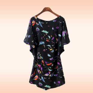 2015夏裝爆款 歐美風大碼小鳥印花連衣裙 雪紡寬松連衣裙 送腰帶 /