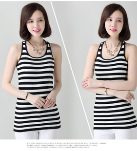 2015春夏裝新款韓版包臀背心裙顯瘦黑白條紋修身打底針織連衣裙女 /