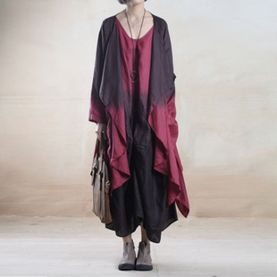 漸變色二件套寬松大碼短袖亞麻連衣裙 夏原創(chuàng)設(shè)計(jì)文藝女裝 /